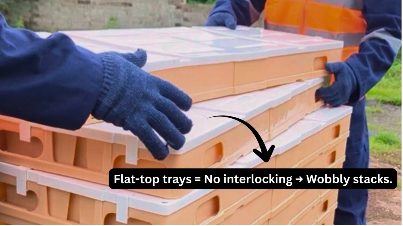 Uneven terrain issues – Mine sites often have irregular surfaces. Without interlocking lids, stacked trays need extra supports, increasing labor and reducing efficiency.