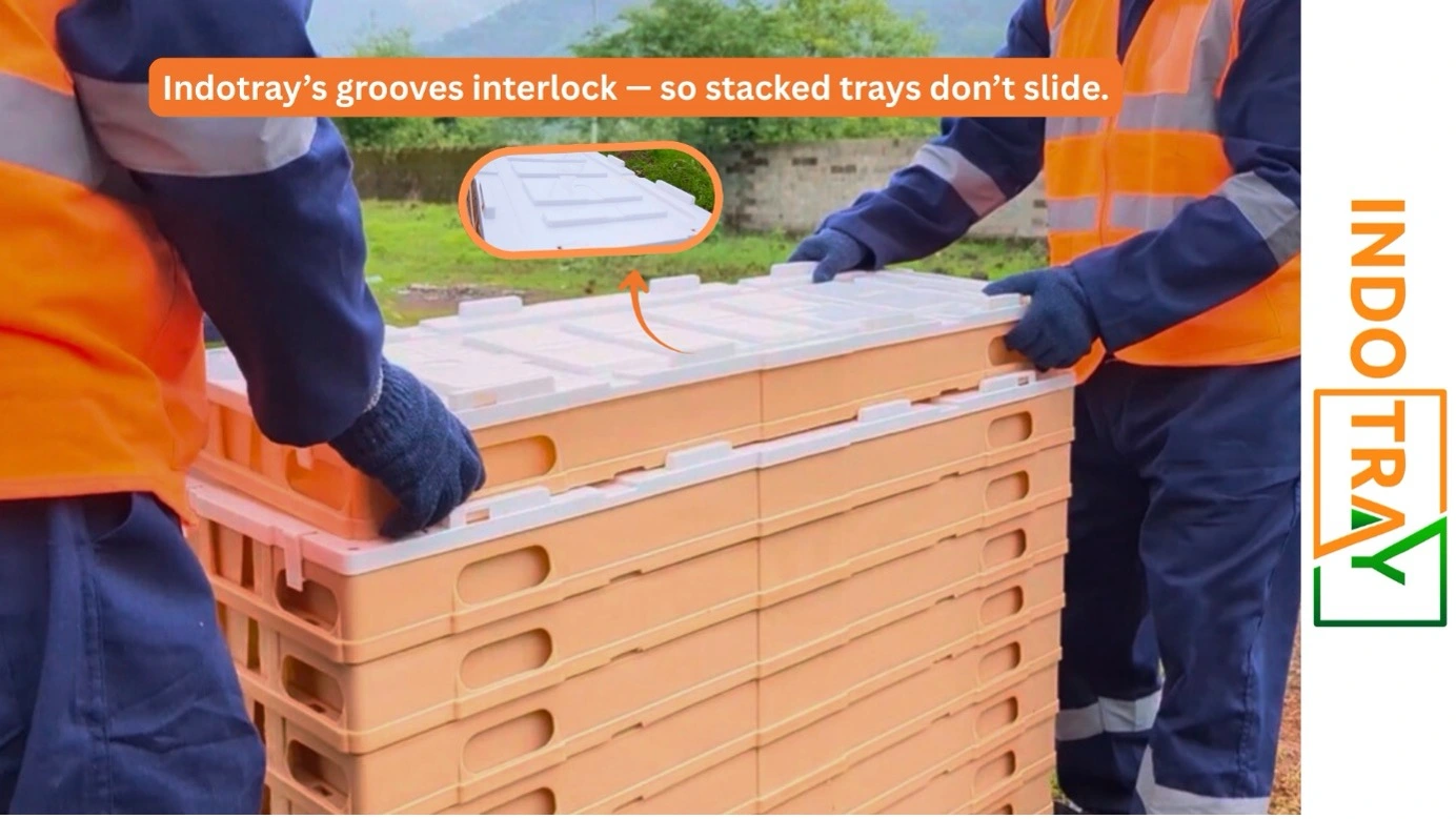 Uneven terrain issues – Mine sites often have irregular surfaces. Without interlocking lids, stacked trays need extra supports, increasing labor and reducing efficiency.